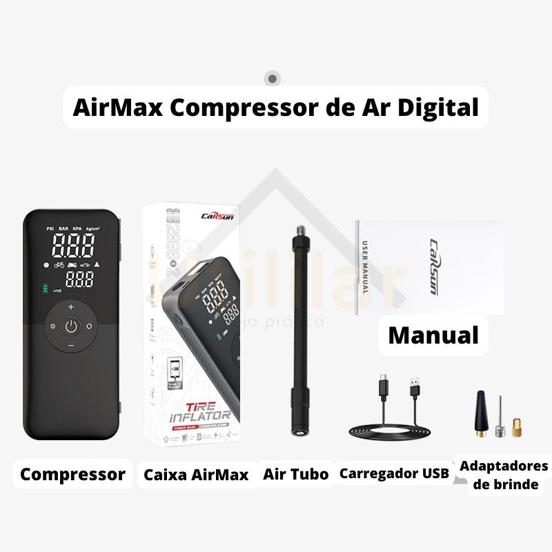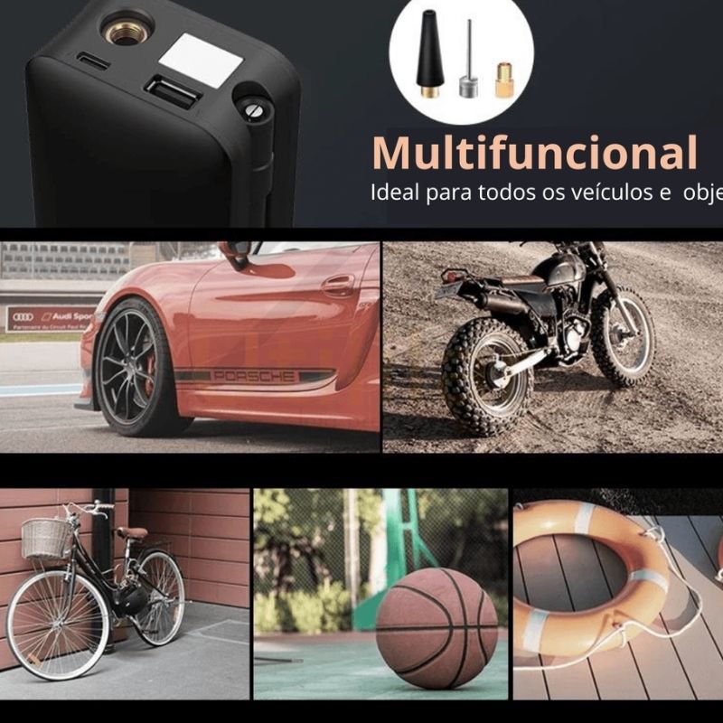 Versatilidade em cada uso! O AirMax Compressor de Ar Digital é um verdadeiro campeão multifunções. Ele permite que você encha pneus de carros e motos, além de bolas, boias e muito mais. Não importa a situação, este compressor estará pronto para ajudar. Sua conveniência e versatilidade tornam-no indispensável em sua vida cotidiana.